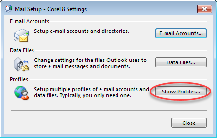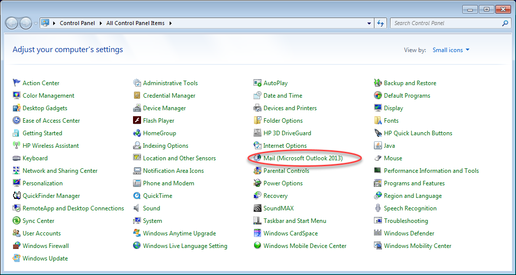If you cannot locate the Mail icon in Windows Control Panel, turn on Classic View (click Classic View on the left side of the Control Panel window).